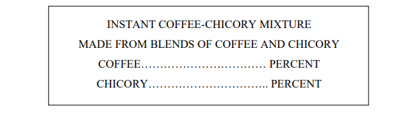 An alternative, more concise format is also provided: “INSTANT COFFEE-CHICORY MIXTURE MADE FROM BLENDS OF COFFEE AND CHICORY, COFFEE…..%, CHICORY…..%”.