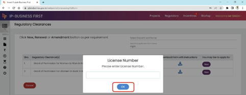 A popup will appear. Enter your previous Shop license number to move ahead.