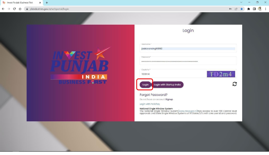 Once registered, go to Login Page or click on Existing User Login or INDUSTRY LOGIN from the top-right menu.