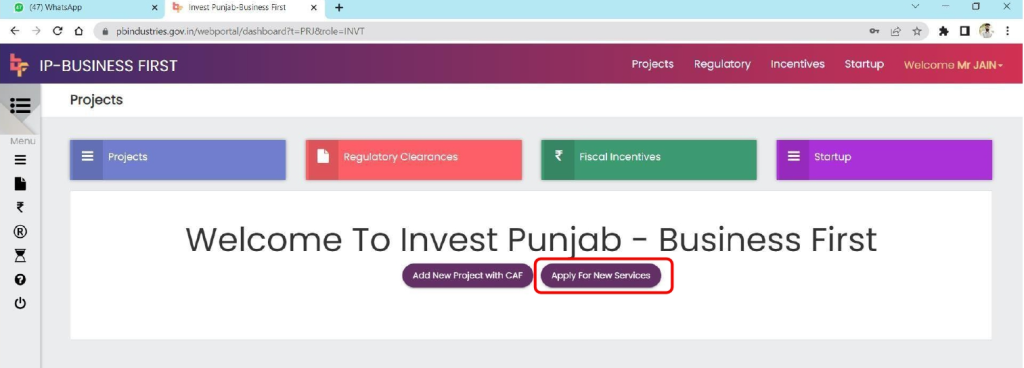 Click on Apply for New Services, then select to apply for a new S-CAF.