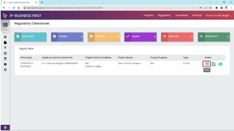 After filling the S-CAF, go to the Action column and click on the Details icon to proceed.