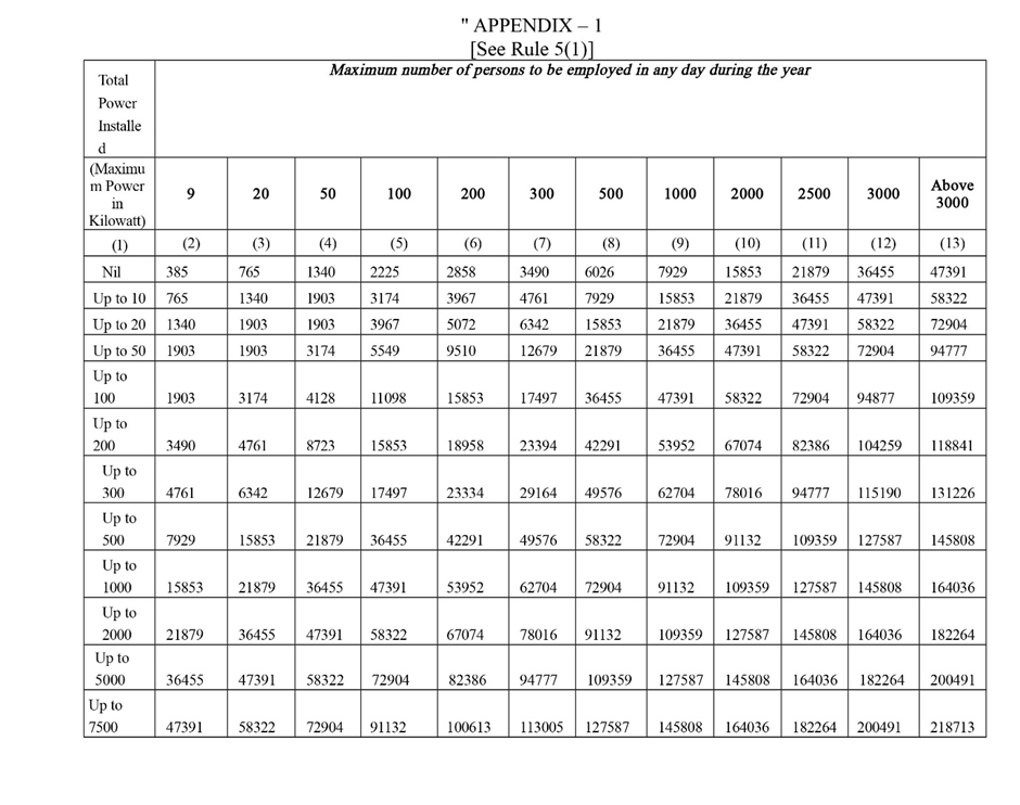 In the Kerala Factories Rules 1957, For APPENDIX I the following Appendix shall be Substituted